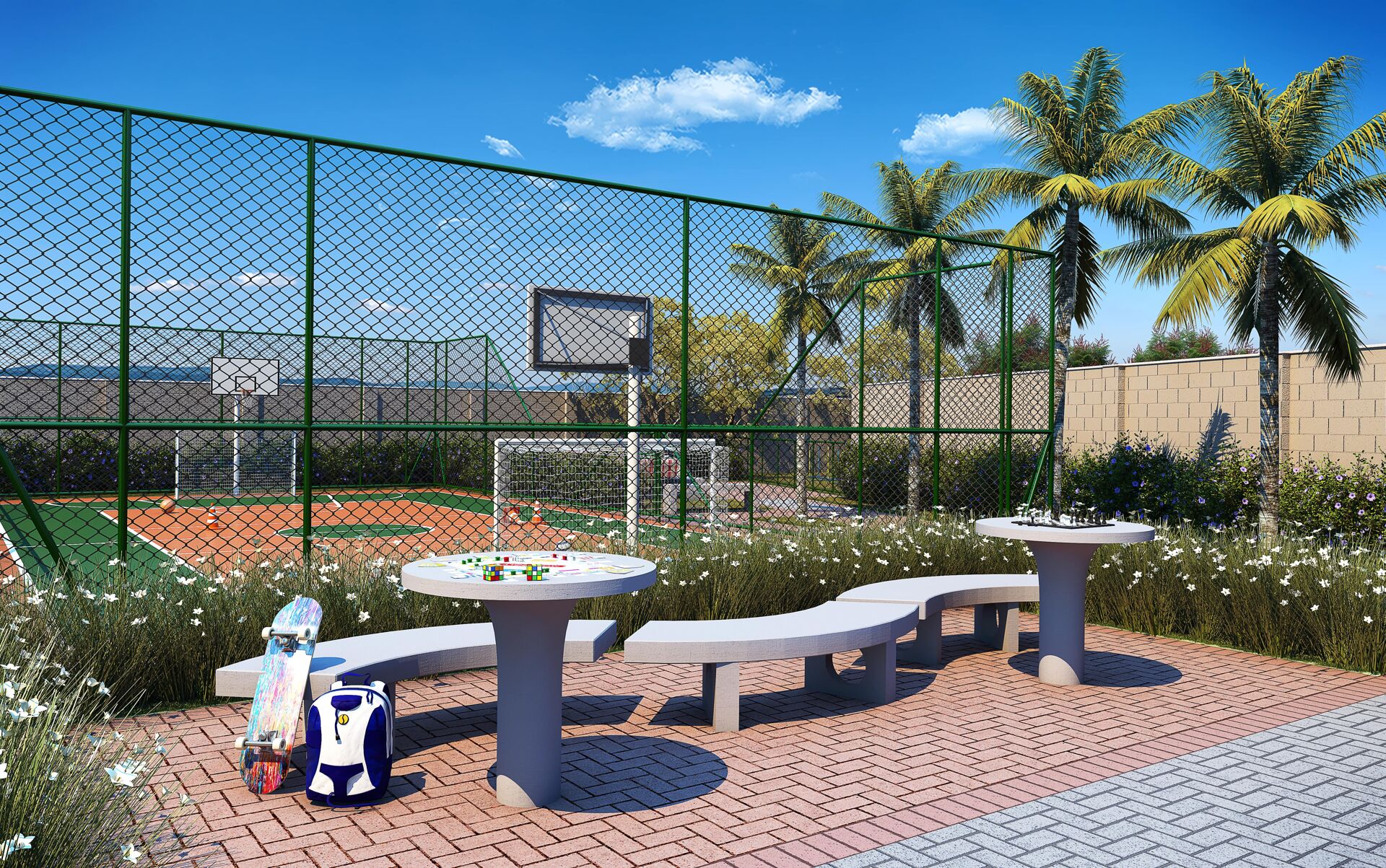 🎯 Lazer completo com piscina adulto e infantil, quadra esportiva, academia, coworking, playground, pet place, minimercado e muito mais
